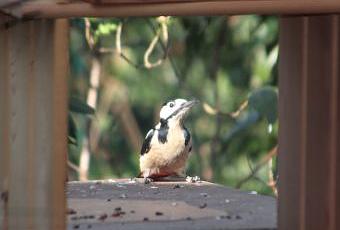 Hier, j'en avais vu un autre à Romilly. Il tambourinait sur une branche de bouleau. Les photos ne sont pas très bonnes parce que cela se passe à 6m au moins, dans une zone assombrie par les grands conifères et je photographie à travers le pare-brise (sale) de la voiture. Dès que j'ai voulu bouger très doucement, il s'est envolé.