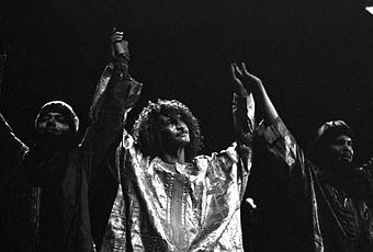 Personne ne semble penser qu’au lieu de monter sur scène, il puisse préférer pour un temps s’occuper des siens, les mettre en sécurité. Ni Ibrahim ni Elaga Ag Hamid n’ont pris l’avion hier. Pas plus que d’autres musiciens du groupe, formation à géométrie variable dès son origine. Au cliché du Touareg “homme bleu sur son chameau” a succédé celui du rebelle saharien “à la guitare et Kalachnikov”. “Certain parmi nous n’ont pas pu venir dans la tournée, parce qu’ils étaient dans une situation d’urgence où ils devaient protéger leur famille, reprend-il. Mais nous avons tenu à venir, même si c’est dur pour nous, dans ces moments difficiles, de chanter et faire la fête, pour faire passer au monde le message qu’il y a un peuple oublié qui est en train de mourir, au fond du désert du Sahara. Je ne crois pas que le gouvernement du Mali a une solution pour nous. Aujourd’hui, nous sommes dans la période debout. Pour s’asseoir, je ne sais pas quand ce sera.”