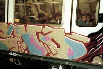 Train de banlieuepeint par Eresy (Paris, 1992), ce writer passionné de Vaughn Bode a souventutilisé des personnages tirés de cette œuvre pour agrémenter ses lettrages. Ila même sorti un fanzine dans lequel il consacre un long dossier sur lui.