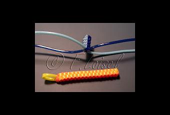 Après quelques mailles vous pouvez terminer votre scoubidou comme ici par une boucle que vous stopperez avec un point de colle cyano.