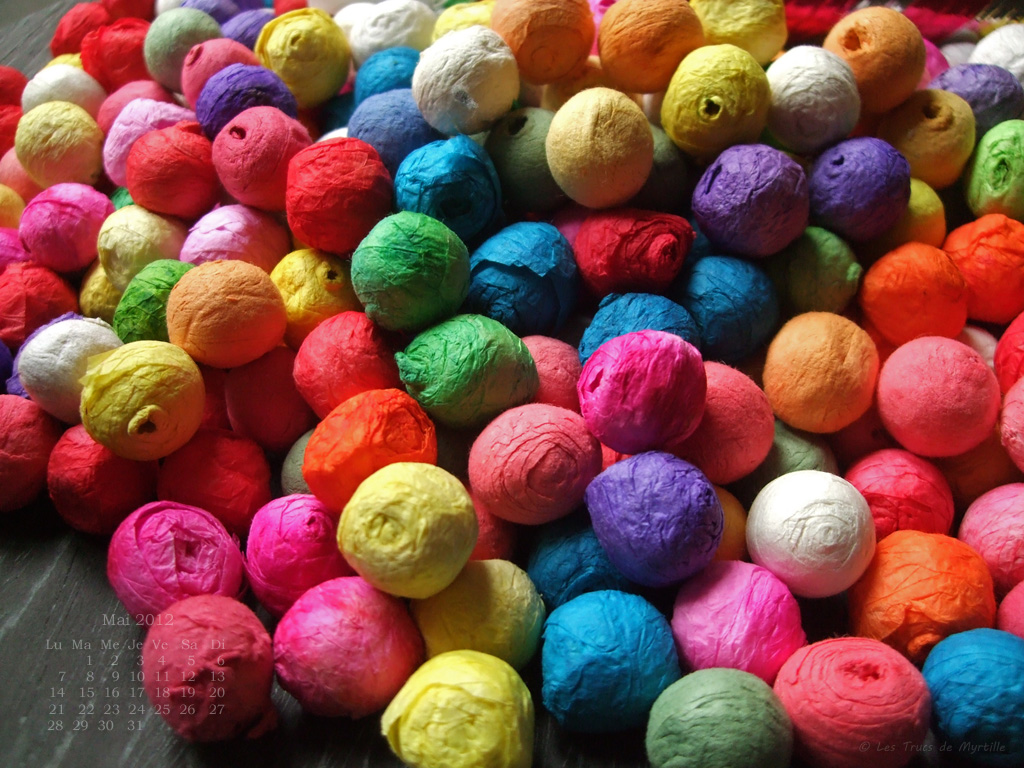 Encore plus colorées, quelques boules de cotillons que je ressors tous les ans avec les sarbacanes pour les fêtes d'anniversaire... le meilleur moment, celui où on peut - enfin ??? - se déchaîner !!