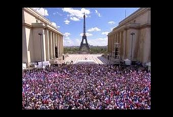 Ce fut le cas ce 1er mai avec la très populaire manifestation de soutien au TROCADERO, face à la Tour Eiffel, sur le parvis des droits de l’homme. Devant des dizaines et des dizaines de milliers de Français (le chiffre de 200.000 personnes n’est nullement usurpé, tant la foule était immense et compacte), le Président-Candidat a déroulé un discours parfait avec des citations fortes du Général DE GAULLE, et fustigeant cette Gauche des syndicats qui a troqué la recherche de progrès pour les travailleurs pour des raisons idéologiques de lutte de classes ; contre cette Gauche qui veut le pouvoir alors qu’elle n’a que le drapeau rouge des communistes à la main quand tous les autres autour du Président SARKOZY arborent fièrement le drapeau tricolore.