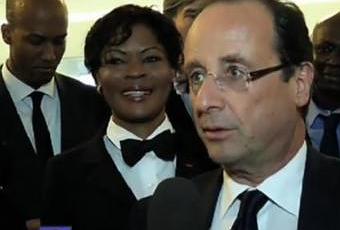 Calixthe Beyala et François Hollande (Palais des congrès le 14 avril 2012)