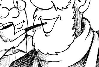 Autre portrait de Tintin et du Capitaine Haddock rendant visite au Professeur Tournesol dans sa maison de retraite.