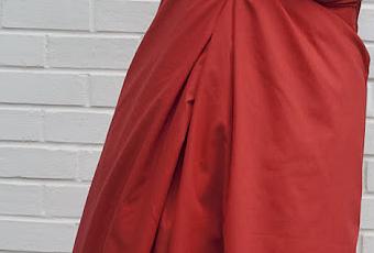 Since I didn't have any red dress (or only one), I needed one...Since, as soon as I received the March issue of the Burda Magazine, I knew I'd make the dress of the cover and that it'd be red...Since they announced that today's défi13 theme would be 'syrup', I knew I'd make this grenadine dress for the occasion, I waited until yesterday to make it (and this, of course, has nothing to do with the fact that this dress has to be worn when it is at least 20°C outside and that there is no point of having it when it is maximum 12,5° at noon, in the sun)