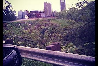 À l'approche de mon village, j'ai dû m'arrêter et faire demi-tour, le rang était barré, des arbres, des poteaux et des fils électriques ainsi que plusieurs débris me barraient la route. On m'a guidée vers un autre chemin. À l'approche de ce dernier, c'était encore pire, des images comme celles que l'on voit à la télévision s'offraient à mes yeux: des morceaux de tôles enroulés autour des poteaux, des arbres déracinés, des toits envolés, des granges effondrées, des silos renversés, etc...