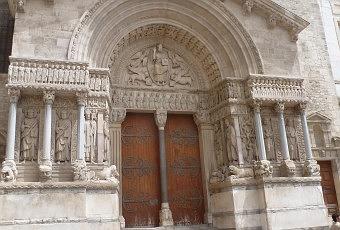 La communauté chrétienne d’Arles est l’une des premières de la Gaule, avec la présence d’un évêque attestée dès 254. Bien plus, la cathédrale d’Arles obtiendra un temps le rang de primatiale des Gaules, et demeurera siège d’un archevêché jusqu’à la Révolution. Aujourd’hui, elle est église paroissiale. Initialement située à proximité du rempart antique de l’Hauture, la cathédrale fut déplacée vers le Ve siècle à proximité de l’ancien forum romain. Elle fut élevée en plusieurs phases et l’essentiel du monument que nous voyons aujourd’hui date du XIIe siècle, époque à laquelle sa façade, initialement sobre, fut rehaussée de sa magnifique statuaire historiée. L’édifice est l’un des plus importants du domaine roman provençal. C'est par ailleurs une église à reliques sur la route de Compostelle. Un chœur gothique remplace les absides romanes au XVe siècle.