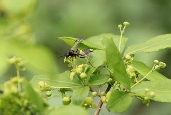 Tenthredo temula se promène par un beau jour d'avril sur le fusain ailé :