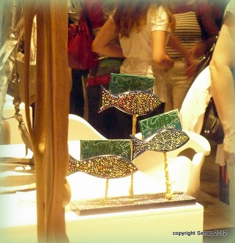Talence sculptures/ Les poissons pubs en bancs serrés dans la foule des grands jours lors du vernissage!