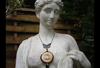 L'image du médaillon, résinée est une reproduction de ma création picturale. Ce qui fait de ce bijou une pièce absolument unique.