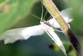 Pterophorus pentadactyla est très abondant à Romilly car il aime les zones humides avec des grandes herbes mais c'est la première fois que je le vois cette année. Il vole au crépuscule et la nuit mais je le réveille quand je remue les herbes et ce sera ainsi tout l'été.