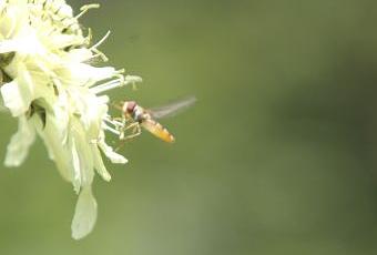Quelques fleurs de Cephalaria gigantea, la scabieuse géante, se sont épanouies et c'est un ballet permanent de bourdons et de syrphes. Ce syrphe ne savait plus où donner de la trompe. Toutes les photos de syrphes sont évidemment prises au téléobjectif, si on approche, ils disparaissent.
