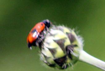 Le clytre du saule est un joli coléoptère mais farouche et rapide. De plus cela se passe sur les boutons de Cephalaria gigantea à 2m de hauteur. Les photos ne sont pas parfaites, elle ne m'a pas laissé faire mieux, mais cela vaut la peine d'apprendre à la connaître, elle a des mœurs spéciales.