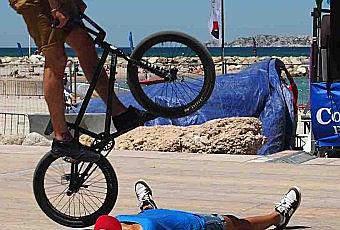 Se régaler devant les démonstrations du champions du monde de BMX, Matthias Dandois,