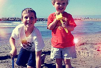 Depuis quelques semaines nous pouvons donc passer les samedis matins à la plage, 2 heures avant qu'il ne fasse trop chaud et que le monde n'afflut. 2 heures pendant lesquelles je me délecte de voir Petit Loulou oser de plus en plus avancer dans l'eau, s'amuser à sauter dans les vagues (petites mais des vagues quand même), que je regarde Petit Chou apprendre à son frère à faire un chateau de sable, à lui donner quelques missions, comme ramasser des coquillages pour décorer le chateau, que je les regarde prendre du plaisir et se détendre autour d'un nouveau plaisir. Et oui la mer, le sable ce n'est tout de même pas toute l'année.