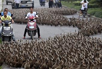 La route appartient à tous, non? C’est ce que répondrait certainement un fermier chinois qui a guidé ses canards sur une route fréquentée, à la grande surprise des automobilistes et des motocyclistes qui y circulaient.