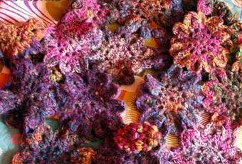 Directement inspiré (et un peu modifié) de la fameuse étole japonaise que tout le monde possède sauf moi , elle est sur ma to do liste à rallonge ^^ j'ai tout, le livre, le shéma, le crochet, la laine .... ben manque plus que le temps alors ^^
