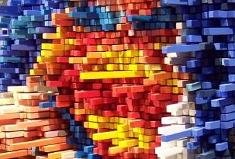 Est-ce un oiseau ? Est-ce un avion ? Non, il s’agit d’une peinture combinée à une impressionnante sculpture pixélisée de Superman. Réalisée par un certain Samuel. On en saura pas plus…