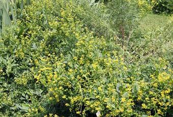 Je me demande pourquoi je n'avais jamais prêté attention à cette plante. Son feuillage est original, couleur et forme, ses fleurettes sont ravissantes. Elle occupe bien l'espace et cela ferait un emplacement sans nécessité de désherbage. Et elle attire les abeilles, elles s'y attroupaient par dizaines. Il est vrai que les abeilles sont de plus en plus nombreuses dans Paris et il y en avait sur toutes les plantes fleuries. Et, en prime, elle repousserait les rongeurs.