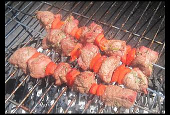 Environ 800g d'épaule d'agneau désossée et dégraissée 2 poivrons rougesQuelques brins de romarin2 verres de vin blanc2 gousses d'ail Sel, poivrePréparation :Couper des cubes de viande. Les faire mariner dans un saladier avec du vin, l'ail écrasé, des brins de romarin, pendant environ 3 heures.Couper le poivron en petits morceaux carrés.Faire des brochettes en superposant un morceau d'agneau, un carré de poivron et ainsi de suite.Saler, poivrer et parsemer de brins de romarin.Il ne reste plus qu'à cuire vos brochettes au four ou au barbecue.
