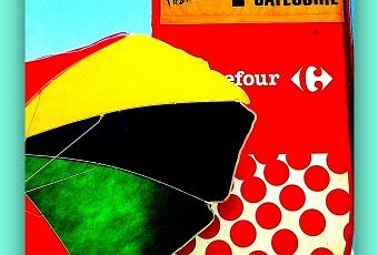 Quelque chose se passait dans la montée, on a vu tout d'un coup débouler les prémices. L'incroyable caravane du Tour ! Le bonheur des mômes et des grands qui chopaient à la volée ce qui giclait des véhicules : bonbons Haribo, gâteaux, ballons, sacs en plastoc, boissons, journaux, porte-clés, des tas de trucs, de menues cochonneries, qui faisaient hurler de plaisir tous les gens agglutinés sur le bord de la route... Du délire cette caravane du Tour. Puis le calme avant "la tempête"...