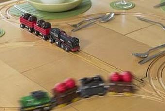 Baptisée TrackTile Dining Table par le designer Paul Mottram, voici une table de salon en bois dotée de rainures formant un chemin de fer permettant à plusieurs petits trains de circuler pendant que vous dégustez vos plats. Une façon ludique d’apprécier un dîner entre amis.