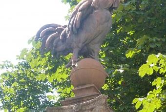 "Conçu à l'époque où de lourds nuages assombrissaient l'horizon européen, notre Coq Gaulois devait, à côté du souvenir de notre défaite (à savoir le Monument de 1870, qui surplombe ce même square) clamer la foi de la France en l'avenir. Il chantera la victoire et la paix." (cité dans Coeurs de pierre).