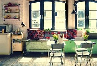 Une lumière qui rappelle les tartines beurrées des dimanches de notre enfance, après avoir paressé au lit et avant de sortir jouer au ballon dans le jardin. Le vert amande flirte avec des coussins aux imprimés rétros et des chaises vintages pour un joli saut dans le temps.