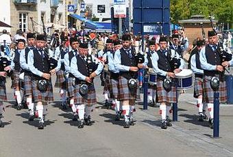 Devant les Quat'Sardines, par GPS le pipe-Band de Pont-Aven