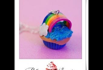 Voici une de mes nouvelle création que j’aime beaucoup. C’est un cupcake dans les tons bleus et arc en ciel. Je me suis inspirée de vrais cupcakes qui sont fait avec des bonbons arc-en-ciel qui piquent, comme sur ces photos :
