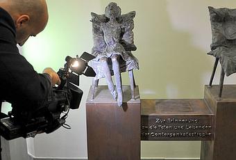 Une petite sculpture de bronze, une fillette sans bras aux jambes déformées assise sur une chaise, devait symboliser les 10 000 enfants au moins nés avec des déformations –parfois une absence de certains membres– après que leur mère eut pris ce médicament qui fut vendu dans près de 50 pays avant d’être retiré du marché en 1961.