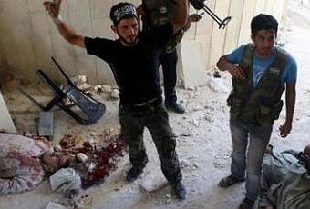 A Alep, les terroristes syriens ont mis en place ce qu’ils nomment désormais, le « volcan d’Alep ». Boutés hors de la ville, ils prennent maintenant en otage les civils qui refusent de se faire enrôler par eux, et tuent les plus récalcitrants, comme dans la photo ci-dessus, et clament leur victoire sur les…civils. Tant bien que mal, l’armée, grâce à des incursions, arrive à sauver certains habitants de ces villages aux alentours d’Alep, victimes de cette nouvelle mafia de la terreur et du chaos, sous les conseils des ennemis de la Syrie.