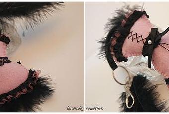 J'y ai pris pas mal de plaisir à la réaliser , j'avais carte blanche sauf sur les couleurs , rose et noir, plumes noires pour l'un , dentelle rose pour l'autre