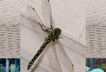 Par exemple, cette libellule qui avait bien trouvé comment rentrer sous le chapiteau, mais pas comment ressortir… Du coup, j’ai pris des photos d’elle « pendue au plafond »