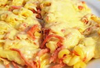 Ce gratin c'est une recette régressive par excellence: des coquillettes, du jambon et du fromage.
