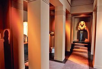 Dans ce mastaba aux tonalités taupe, couleur fétiche du décorateur François-Joseph Graf, le visiteur chemine dans la pénombre jusqu'au buste monumental de Sésostris Ier