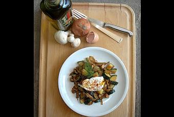 « Poêlée de courgettes et champignons, surmontée de son œuf poché »