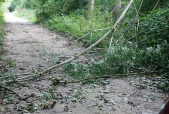Malheureusement je n'ai pas le réflexe de prendre les photos indispensables devant tout ce qui me menace et je n'ai pensé à prendre cette photo qu'après avoir dégagé la plus grande partie des branches que voici au bord du chemin :