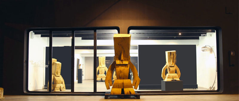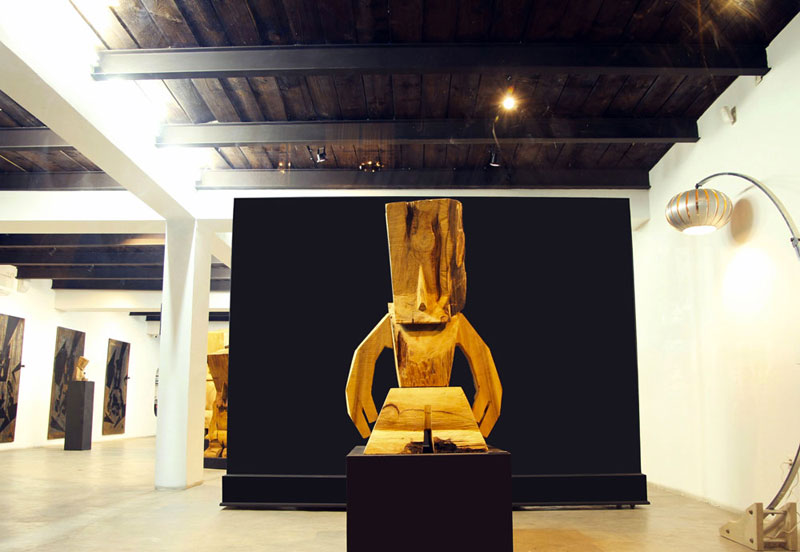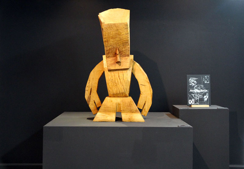 En effet, Steph Cop a sculpté trois exemplaires de son fameux WOODEN A.R.O. (« Analyze Reflex Obsessional ») dont deux s'élèvent à plus de deux mètres vingt de hauteur, dans des essences de cèdres de l'Atlas Marocain.