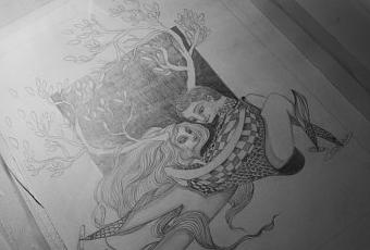 Une fois n’est pas coutume, après la jolie commande pour un petit garçon réalisé en 2011, J’ai réalisé cette année une image pour adulte, un cadeau de mariage. Je me suis vraiment régalé à réaliser cette image, totalement à la main, critérium et crayon aquarellable. Un grand merci à Julien et Rodica pour cette commande.