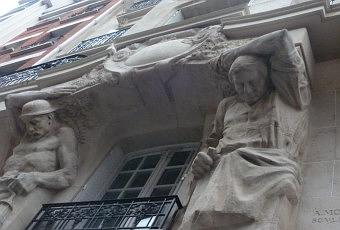 En 1911, l'architecte Raoul Brandon réalisa cet immeuble dont les sculptures dues à Alexandre Morlon, représentent dans de attitudes d'atlantes, des travailleurs dans leur activité: un pêcheur, un paysan, un mineur, un ouvrier.