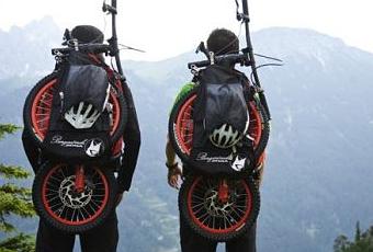 Tout l’intérêt de l’alpinisme réside dans l’assurance de résister à toutes les difficultés du terrain aussi accidenté qu’il soit, dans un seul but – atteindre le sommet. La descente, par contre, est un mal nécessaire, surtout au niveau des articulations. Il en va tout autrement en VTT. La descente est une récompense qui fait grimper le taux d’adrénaline. Le VTT vous ramène sans efforts dans la vallée et permet de parcourir des longues distances. Le « Bergmönch » associe les deux. Il se transporte confortablement en montée et se transforme en véhicule de descente tout-terrain très fun.Le Bergmönch