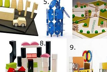 1. Draisienne-porteur Spherovelo 2. Cubes Groovie maths Uncle Goose 3. Avion Playsam 4. Ma ville aimantée Kiko 5. Habitadule Voyageur Mon Petit Art 6. Metrocity Milaniwood 7. Magnatab KidO 8. Blocs de construction Brio 9. Eames House of Cards 10. Doudous robots Corby Tindersticks 11. FaceMaker Miller Goodman 12. Jeu d'échecs Londji