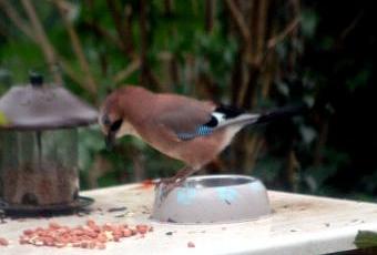 Si je les nourris bien tout l'hiver, j'aurai une couvée au printemps. Mais ça va coûter cher. Je ne trouve pas les cacahuètes en sacs de 15 kg comme le tournesol. Les petits oiseaux attrapent une graine et partent aussitôt avec. Les geais consomment sur place et beaucoup.