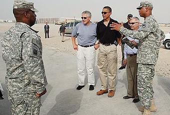 Les sénateurs Barack Obama et Chuck Hagel au Kowait en 2008