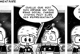 Retour de Cosmozone après plus de deux semaines de vacances : premier strip de 2013. Série sur le vote, cette fois ; un peu de politique ne fait (preque jamais) de mal.