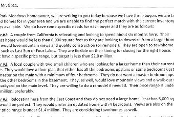 La lettre « formulaire » a été envoyé à ma boite postale et de toute évidence, l'agent immobilier n'avait aucune idée de ce à quoi ma maison pouvait ressembler, en prétendant qu'il y avait trois acheteurs à la recherche d'une résidence dans mon quartier.