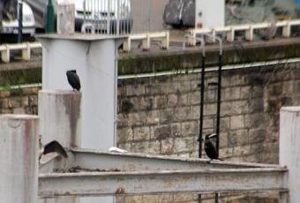 Lorsque je suis arrivée sur le pont d'Austerlitz cet après-midi, j'ai eu une grande joie : les cormorans étaient là, au même endroit que l'an dernier, sur les installation de la police fluviale. C'est leur résidence d'hiver.