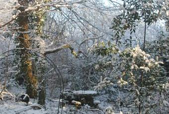 Ce soir la neige avait disparu dans la grande allée d'entrée et dans les petites allées couvertes de feuilles mortes du jardin mais elle était toujours épaisse sur la végétation. Pourquoi cette différence alors que personne n'a marché dans les allées ? Quand je dis que je trouve ça beau, c'est parce que je peux admirer par les fenêtres, bien au chaud dans la maison. Je n'aime pas l'hiver, je n'aime pas le froid. Je viens d'entrer en semi-hibernation, un peu comme les écureuils. Je ne me réveille que pour manger et faire un câlin au chat qui dort encore plus que moi, sur moi dès que je m'allonge.