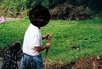 Dans cette partie, on peut s'apercevoir qu'il n'y avait rien d'autre que de l'herbe. On aperçoit aussi au premier plan, Angèle ( 24 mois) et Mr qui, à cette période, mettait volontiers les mains dans la terre (les temps changent...)